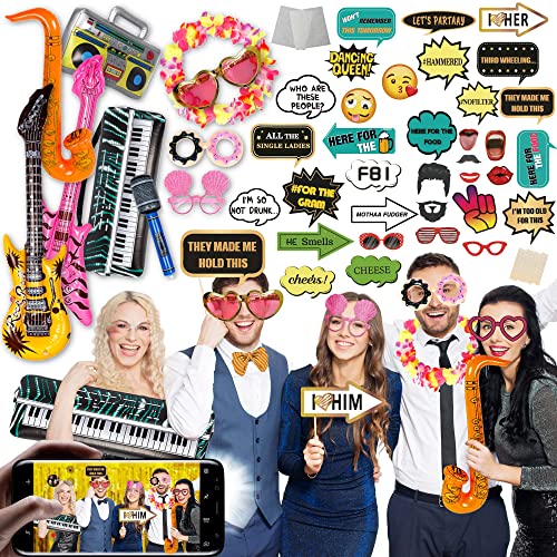 Soul Shift Fotobås festrekvisita, födelsedagsdekoration, uppblåsbar gitarr, uppblåsbar mikrofon, festtillbehör för vuxna, bröllopsfotorekvisita, rekvisita, festivalrekvisita (41 st set)