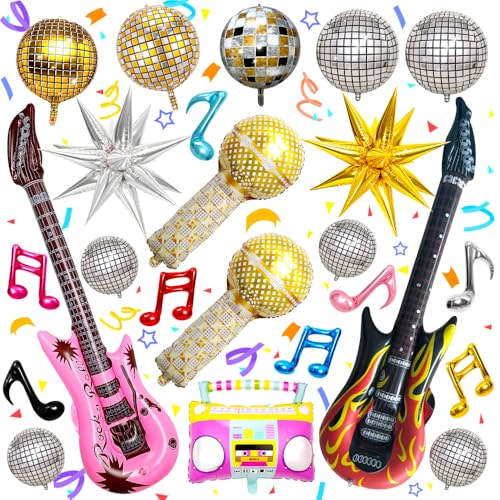 SITAKEGS disco partyballonger, 26 st disco boll explosion star gitarr uppblåsbar saxofon mikrofon blandad musik folieballong, 80-tals 90-tals retro tema hip hop disco feber födelsedag fest ballong