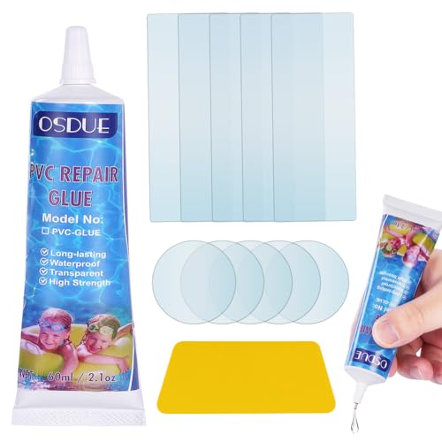 OSDUE Luftmadrass, patchkit, badtunna reparationssats vattentät, vinyl uppblåsbart reparationslim för uppblåsbar kajak, luftsäng, badtunnor, plaskdamm, studshus – 60 ml