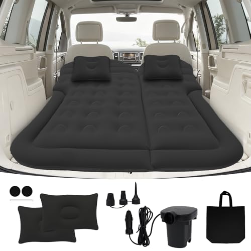 SanBouSi, SUV, bil, luftmadrass, uppblåsbar madrass, avtagbar, bil, luftmadrasser, tjockare uppblåsbar säng, camping, uppblåsbar madrass med 2 kuddar och pump, svart