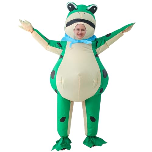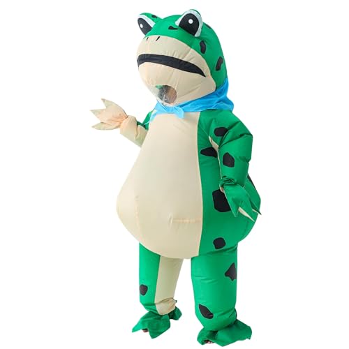 JOYBRO Uppblåsbar Groddräkt för Vuxna, Rolig Grodkostym för Män och Kvinnor, Perfekt för Halloween, Karneval, Maskerad och Temafester, En storlek 160–190 cm