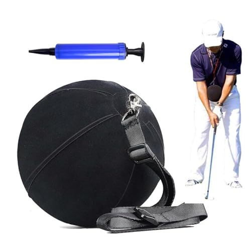 SUBORAWOS Hjälp för golfträning, smart boll för golfswingtränare, uppblåsbar och bärbar golfträningsutrustning, träningsboll för hållningskorrigering för män kvinnor nybörjare (svart)