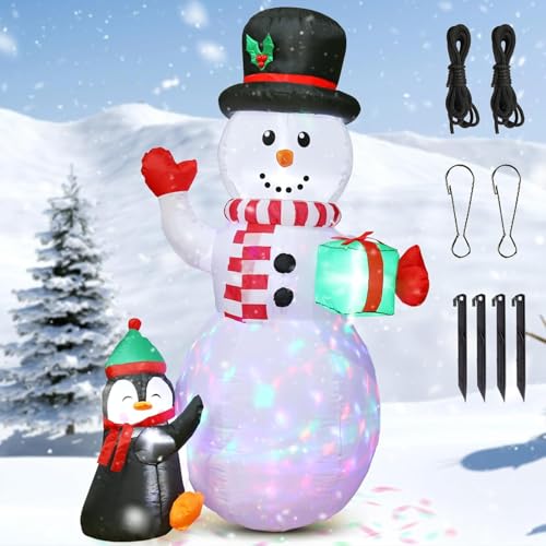Quntis 2,4m uppblåsbar juldekoration snögubbe 3 färgglada roterande lysdioder och blåsare, IP44 LED upplysta uppblåsbara julfigurer snögubbe pingvin för utomhus inomhus som gräsmatta trädgård gårdshus