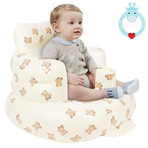 Uppgraderad uppblåsbar babystol för bebisar 3–36 månader inbyggd luftpump spädbarn ryggstöd sommar soffa småbarn stol för sittande baby shower säte gåvor (uppgradering björn)