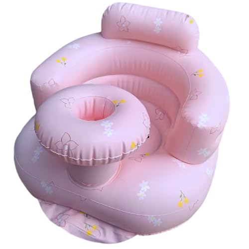 Uppblåsbar barnstol för bebisar 4–24 månader inbyggd luftpump spädbarn ryggstöd soffa småbarnsstol för att sitta upp, baby duschstol utomhusstol, golvsits gåvor (rosa blombricka)
