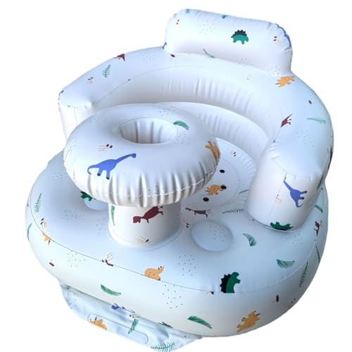 Uppblåsbar sits för spädbarn från 4–24 månader, integrerad luftpump, ryggstöd för barn, soffa, småbarnsstol för att sitta på, showerstol, baby utomhussits (dinosaurier)