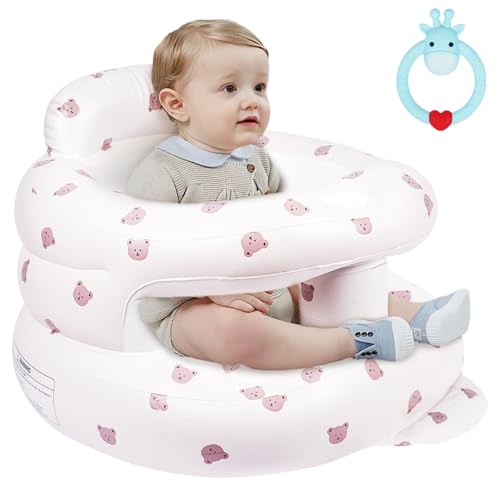 Uppblåsbar barnstol för bebisar 4–24 månader inbyggd luftpump spädbarn ryggstöd soffa småbarnsstol för att sitta upp, baby duschstol utomhusstol, golvsits gåvor (rosa kanin)