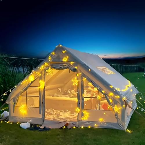 DanCoom Uppblåsbart campingtält, stugtält, 2-4 personer, Glamping-tält, solskydd, enkel montering, vattentätt Oxford-tält, uppblåsbart hustält