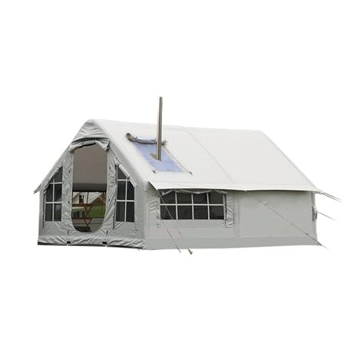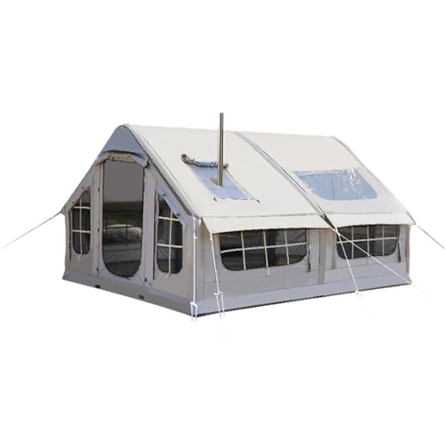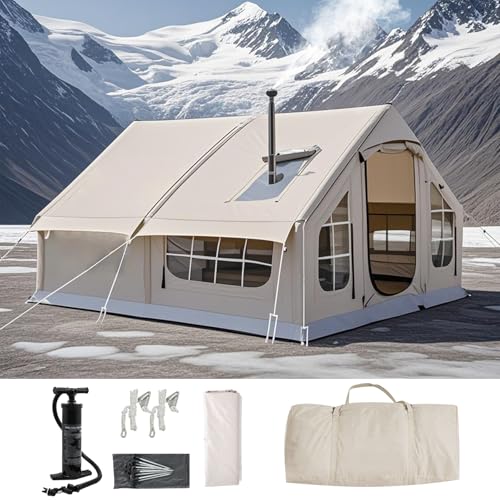 Uppblåsbart Hustält, Uppblåsbart Tält 2-6 Personer, Uppblåsbart Tält 4 Säsong, Familjetält Glamping Tält Uppblåsbart(2 Minuter Snabb Montering), Litet Uppblåsbart Tält med Kaminhål Varm Tält Med Golv