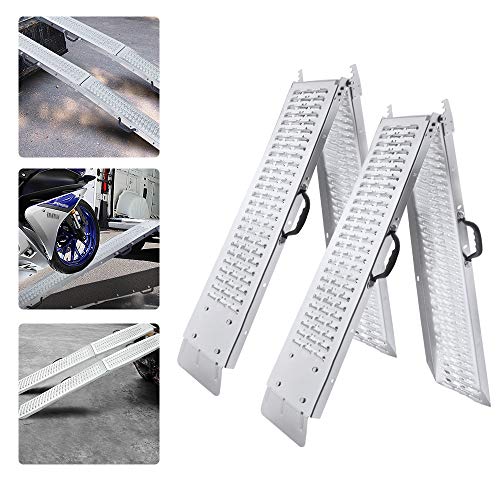 Masko® Uppkörningsramp, 340 kg, vikbar lastramp av aluminium, max 680 kg per par, lastskena, halkfri, hopfällbar, max 340 kg per styck, för motorcykel, ATV, fyrhjuling och personbil, antal: 1 x uppkörningsramp