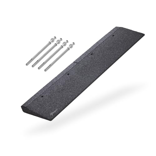 Bepco trottoarramp + fästset, L x B x H: 100 x 25 x 4 cm av gummi (svart) uppkörningsramp, dörrtröskelramp, med lagrade brickor för fastsättning