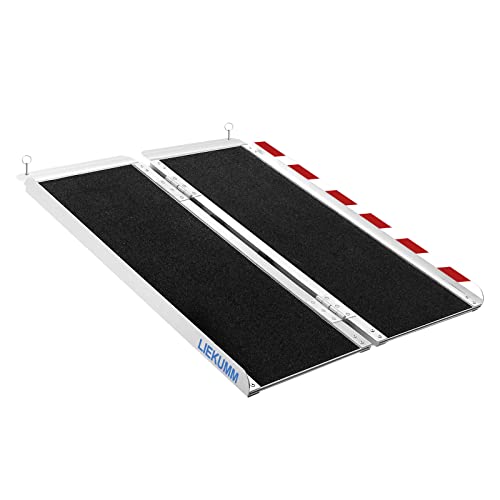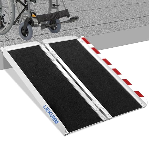 LIEKUMM Rullstolsramp 91 cm, 300 kg lastkapacitet aluminium uppkörningsramp halkfri, rullstolsramp för trappor, bärbar ramp för rullstol, dörrtrösklar, hemma