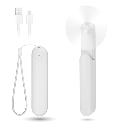 Venforze Handhållen minifläkt, uppladdningsbar tyst fläkt [9-15 arbetstimmar], bärbar liten fickstorlek personlig handfläkt för resor, utomhus, inomhus och enkel smink (vit)