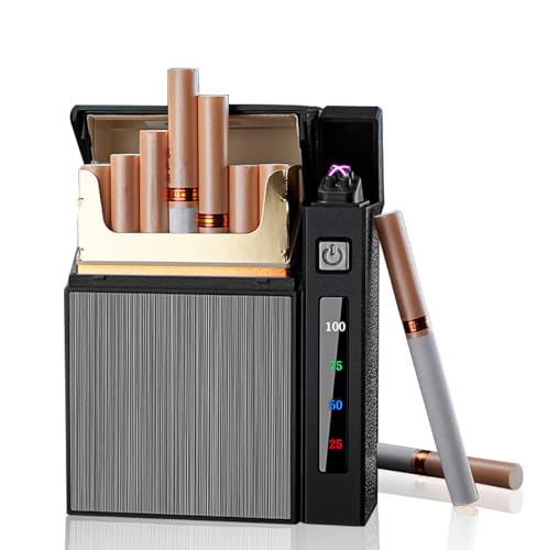 Cigarettfodral med tändare cigarettfodral tändning: Nizirioo dubbla bågar tändare cigarettbox, digital batteriindikator fylld med 20 cigaretter USB uppladdningsbar cigarettbox present