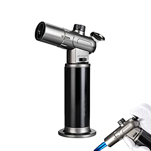 Uppladdningsbar butan köksfackla tändare med säkerhetsvindtät jet ficklampa turbin justerbar flamtändare metall gåvor tändare, svart
