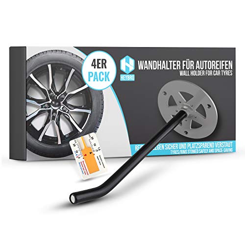 Universell vägghållare för däck i en uppsättning av 4 platsbesparande förvaring av dina bildäck inkl. däckets slitbanemätare optimal vägghållare även för stegar, verktyg etc. Premiumkvalitet