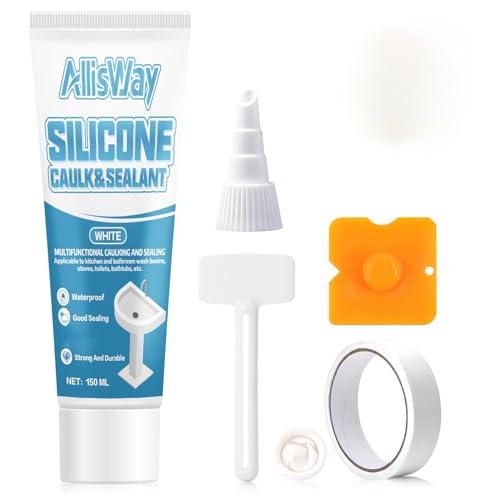 AllisWay Vit silikon, badrum silikon, vattentät tätningsmedel för kök och badrum, anti-kalorisilikon tätningsmedel, bra tätning, innehåller en komplett uppsättning verktyg, 150 ml