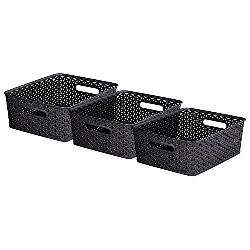 Curver My Style rottingeffekt uppsättning av 3 kök, vardagsrum, badrum, sovrum, verktyg medium rektangulära förvaringskorgar 12 liter - antracit, mörkgrå (L 35,5 cm x B 29 cm x H 13 cm)
