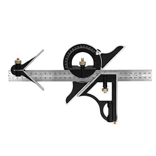 BuyWeek Kombo fyrkantig linjal, 0-12 tum kombination fyrkantig uppsättning multifunktionell kombination fyrkantig träbearbetning mätvinkel längd verktyg