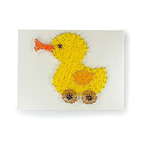 pracht creatives hobby gmbh 6029-15041 tråd bild anka ca 15 x 20 cm, liten string-konstbild, komplett uppsättning med trådar, metallspikar, verktyg, stencil och träplatta, färgglad