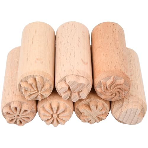 Uppsättning av 7 runda trästämplar för lera och keramik, naturträ gör-det-själv-verktyg med olika mönster – perfekt för scrapbooking, textiltryck, bakverk dekoration och kreativa pysselprojekt