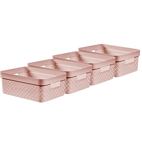 Curver Terrazzo geometrisk effekt uppsättning av 4 kök, vardagsrum, badrum, sovrum, verktyg medium rektangulära förvaringskorgar 11 L – rosa