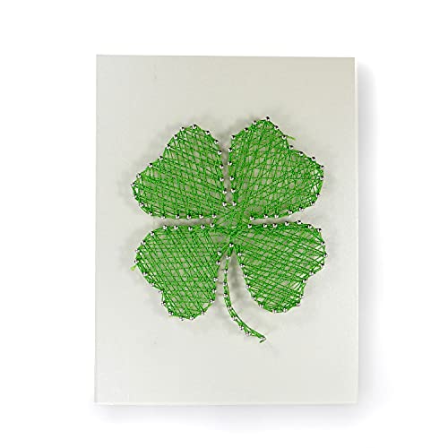 pracht creatives hobby gmbh 6029-15021 tråd bild klöverblad ca 15 x 20 cm, liten string-konstbild, komplett uppsättning med trådar, metallspikar, verktyg, stencil och träplatta, färgglad