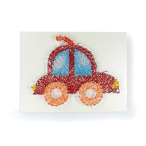 pracht creatives hobby gmbh 6029-15031 tråd bild bil ca 15 x 20 cm, liten string-konstbild, komplett uppsättning med trådar, metallspikar, verktyg, stencil och träplatta, färgglad