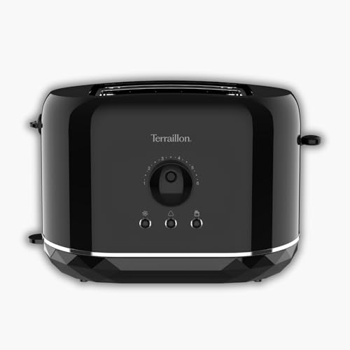 TERRAILLON Svart diamant - brödgaller, 2 fack 13 cm, 6 effektnivåer (870 W), bakverk, upptining, uppvärmning, automatisk avstängning, diamantpräglad bas, svart