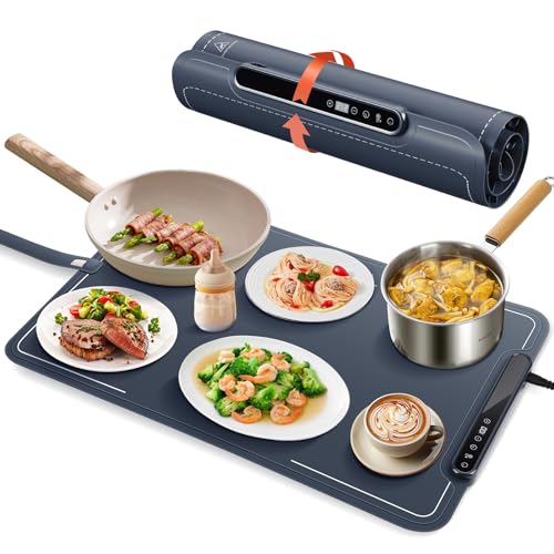 iTRUSOU Värmeplatta för mat, matvärmare, full uppvärmning, justerbar temperaturkontroll, bärbar, rullbar, med nano-silikonmaterial, varmhållning eller upptining