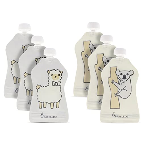 BABYLEDO Återanvändbara klämpåsar, för spädbarn och barn, 6-pack, 150 ml, BPA-fri, dubbel dragkedja, robust material – lämplig för frysning och upptining, diskmaskinssäker