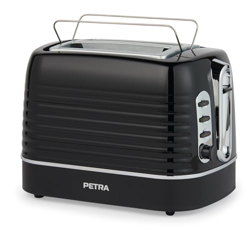 Petra PT5573BLKVDE Brödrost - för 2 skivor bröd, Integr. Värmeställ v. Patties, 6 olika nivåer av garvning, upptining, uppvärmning och avbryt borttagning. Smulbricka, 1050 W, svart