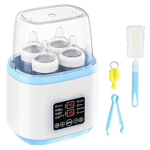 Carehabi Flaskvärmare baby för 2 flaskor, vit 4-i-1 babyflaskvärmare med sterilisator och temperaturkontroll, babymatvärmare för uppvärmning och upptining mat