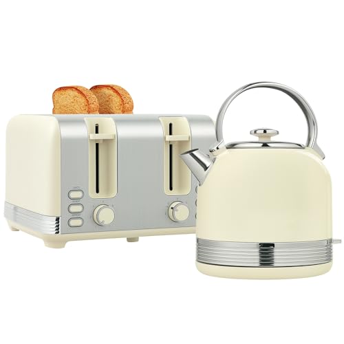 Vattenkokare Brödrost Set Frukost Set med 1,7 L vattenkokare, 4 skivor Brödrost, 2200 W, 7 Browning Levels, Upptining, Återuppvä