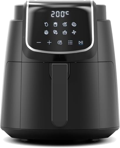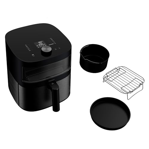 Haier Series 5 multifunktionell oljefri fritös med tillbehörsset, 9-i-1 luftfryer, stort fönster, varmluftsmatlagning, grillning, långsam matlagning, upptining, yoghurt, 7L, svart