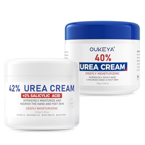 OUKEYA 40% Urea Fotkräm & 42% Urea + 2% SA Kräm Set, Intensiv Vård för Torra, Spruckna Hälar, Fötter & Händer, Exfolierande & Djup återfuktande behandling, 2x150g