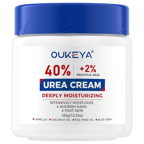 OUKEYA 350 g ny formel urea-kräm 40 % plus salicylsyra 2 %, fotkräm fukt och reparation för torra, fötter, hälar, knän, urea handkräm för händer, fot