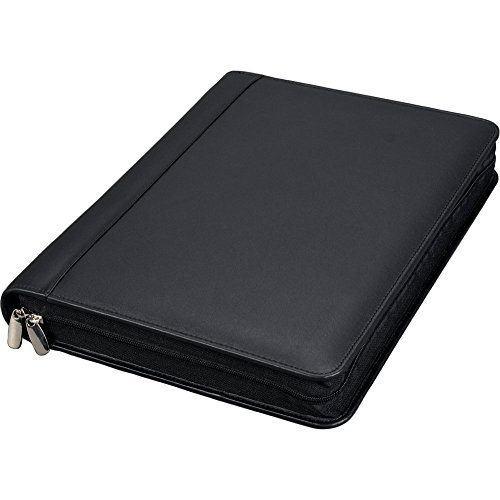 Alassio 30061 A4 BOSA ringpärm, nappa lädermapp, lädermapp med ringmekanism och avtagbart urklipp, svart zip-mapp, affärsmapp ca 35 × 27 × 5 cm