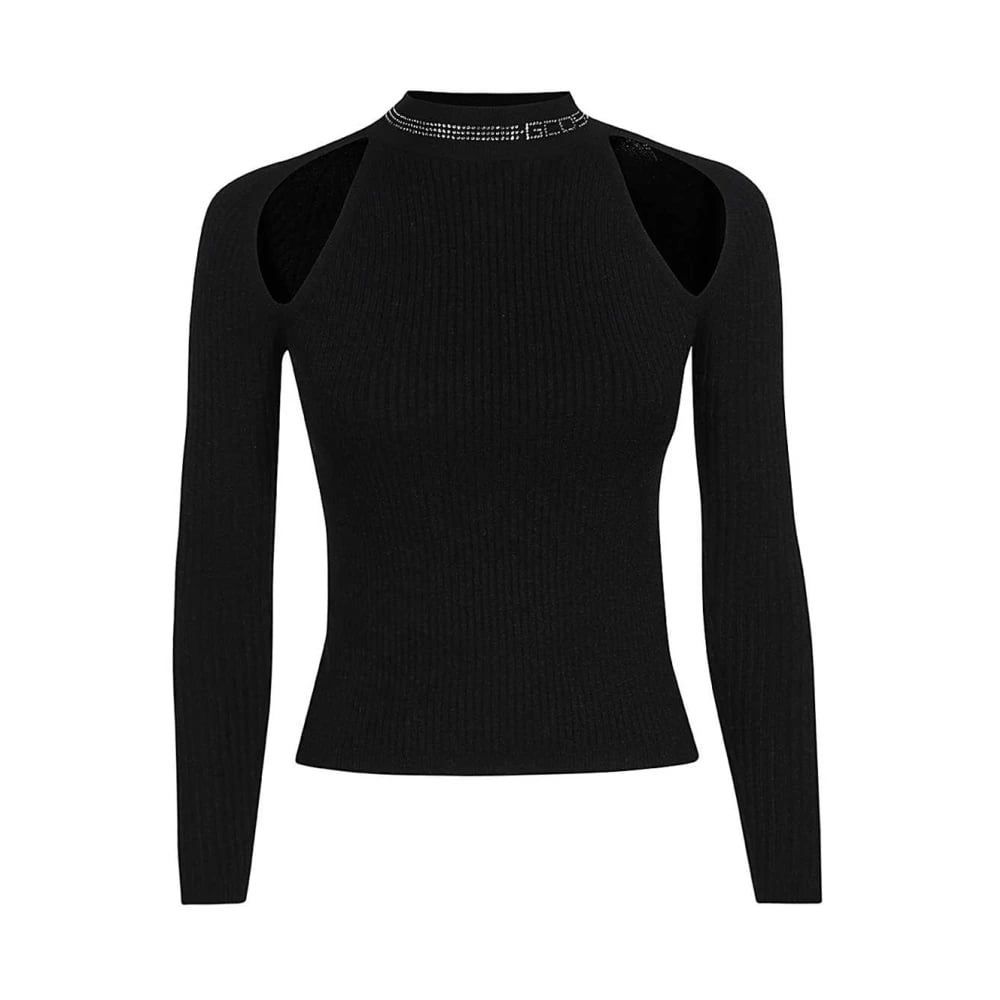 Gcds, Stickade Tröjor , Dam, M, Polyester, Räfflad stickad topp med urklipp