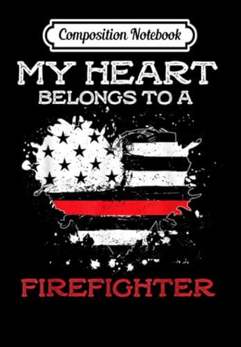 Composition Notebook: My Heart Belong To Firefighter Thin Red Line Heart USA Flag, Journal 6 x 9, 100 Page Blank Lined Paperback Journal/Notebook
