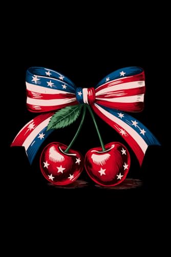 Patriotic USA Flag Cherry Design Notebook Journal for Teens: Perfect for note-taking, planning, work, travel, idea jotting, habit tracking, 120 Pages, Medium 6 x 9 Inches