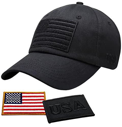 Antourage American Flag Unconstructed Hat for Men and Women Twill Mesh Snapback Baseball USA Flag Cap + 2 Patriotic Patches ((10.8) Black Classic)