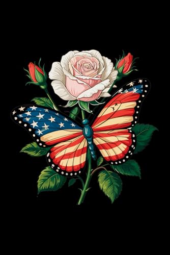 Patriotic Usa Flag Butterfly Rose Design Notebook Journal: Perfect for note-taking, planning, work, travel, idea jotting, habit tracking, 120 Pages, Medium 6 x 9 Inches