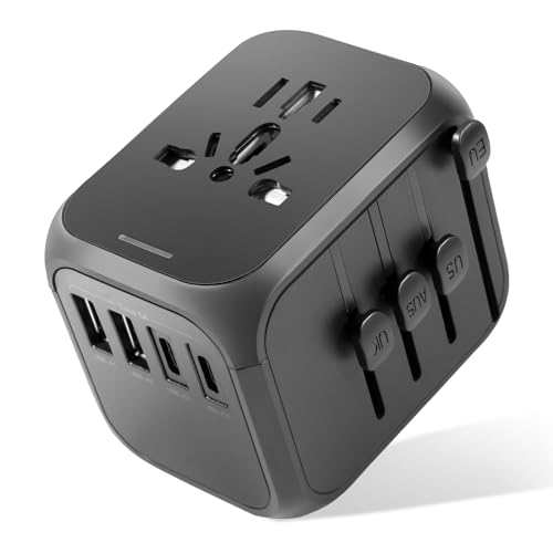 Bigfish Universell reseadapter, universell reseadapter med 2 USB-C och 2 USB-A, adapter kontakt UK USA Japan Kanada Australien Thailand, universell reseadapter