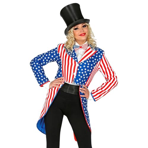 Widmann 48231 48231-USA paradfrack, trädgårdsuniform, stjärnor och ränder, amerikansk flagga, kostym, karneval, temafest, damer, flerfärgad, S
