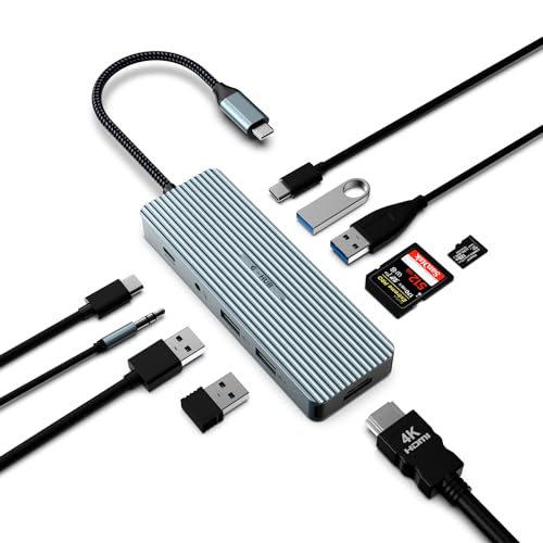USB C-adapter, USB 3.0 HUB, 10-i-1 USB typ C-hub med 4K HDMI, 2 USB 3.0, 2 USB 2.0, 100 W PD, 3,5 mm ljud, SD/TF-kortläsare för bärbara datorer, Windows, Linux, Chrome OS-system