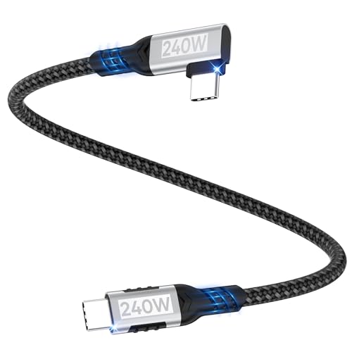 Kort USB C till USB-C-kabel, 0,2 m (240 W, 48 V/5 A), 90 graders högervinklad nylonflätad PD3.1-snabbladdningskabel, för iPhone 16/15, Galaxy S24/S23, MacBook Pro/Air/Mini/Switch