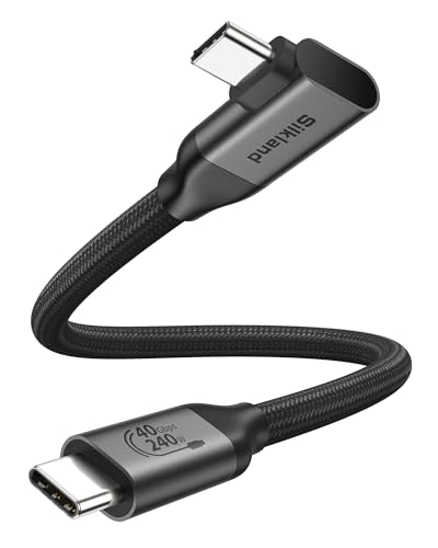 Silkland USB 4 för Thunderbolt 4 Kabel Kort 0.3M Vinkel, 40Gbps Datakabel 90 Grader, PD3.1 240W 48V/5A, 8K@60Hz HDR USB-C-Kabel för MacBook Pro, iPad Pro, iMac, Docking, SSD, Monitor