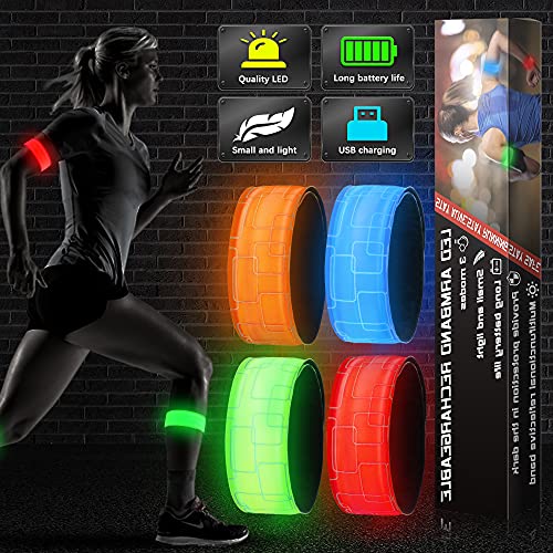 Funmo 4 stycken LED-armband uppladdningsbara, ljusarmband USB reflektorband reflekterande band LED-armband ljusband barn reflektorband för barn vuxna löpning, jogging och cykling, M, Nylon