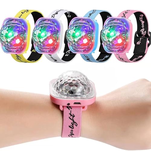 Lancoon Disco Ball lampa, bärbar mini bärbar LED-lampa natt stroboskop klocka armband USB-laddning röststyrd med sugkopp för barn fest bil dans DJ klubb (rosa/gul/blå/vit)